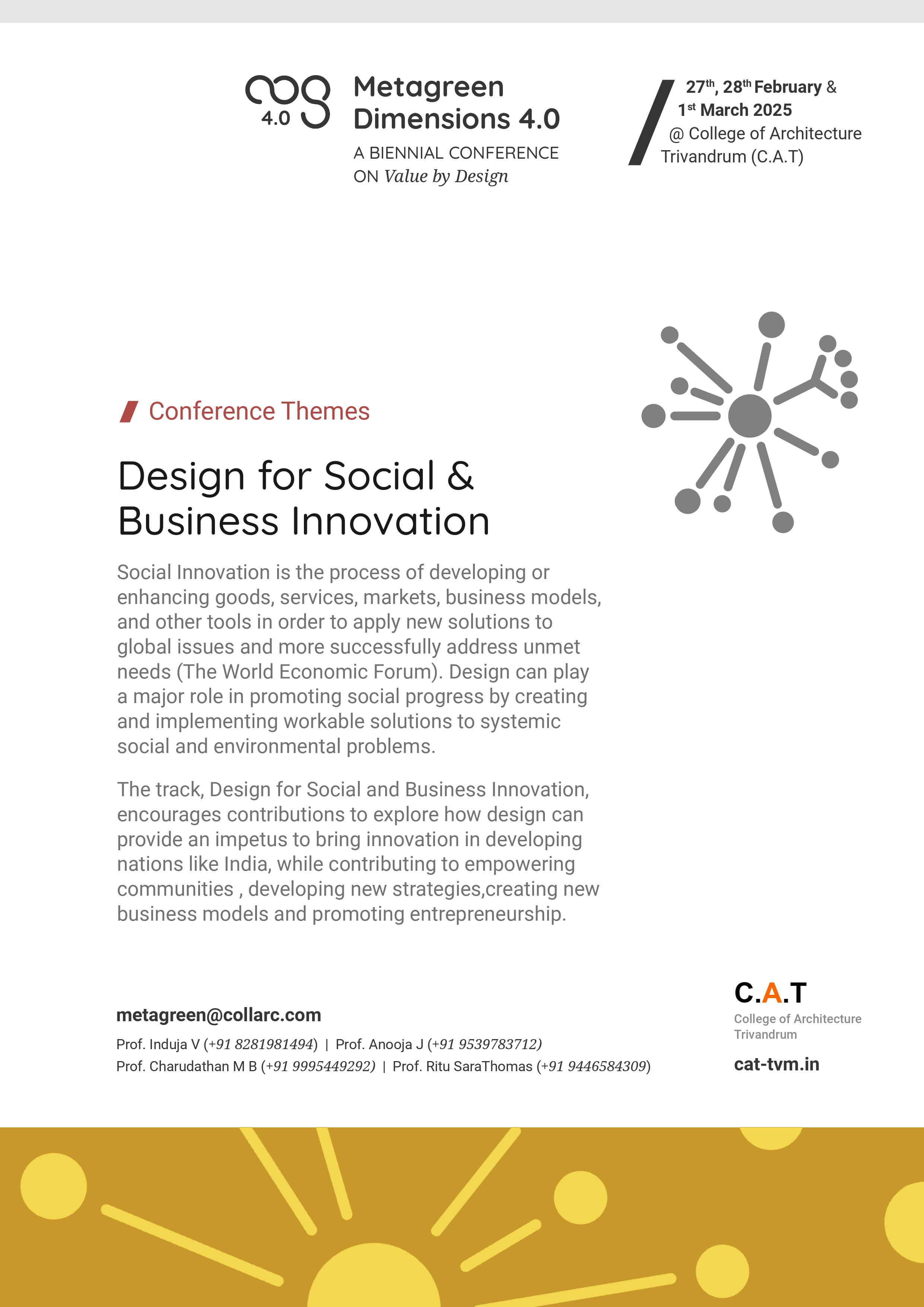The track, Design for Social and Business Innovation, encourages contributions to explore how design can provide an impetus to bring innovation in developing nations like India, while contributing to empowering communities , developing new strategies,creating new business models and promoting entrepreneurship.