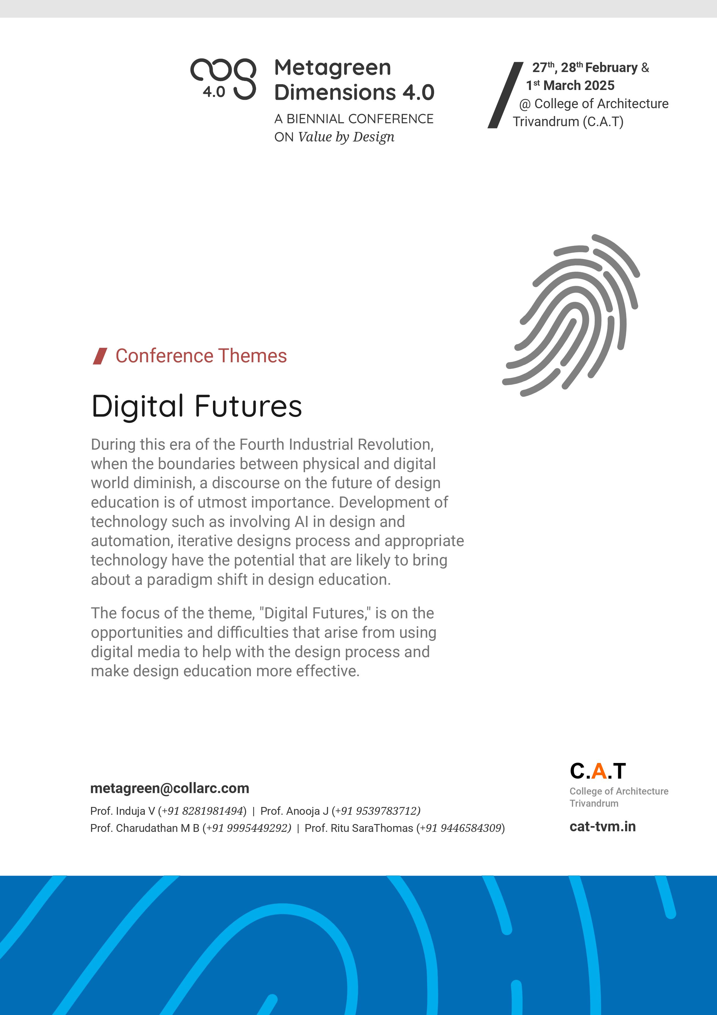 The focus of the theme, "Digital Futures," is on the opportunities and difficulties that arise from using digital media to help with the design process and make design education more effective.