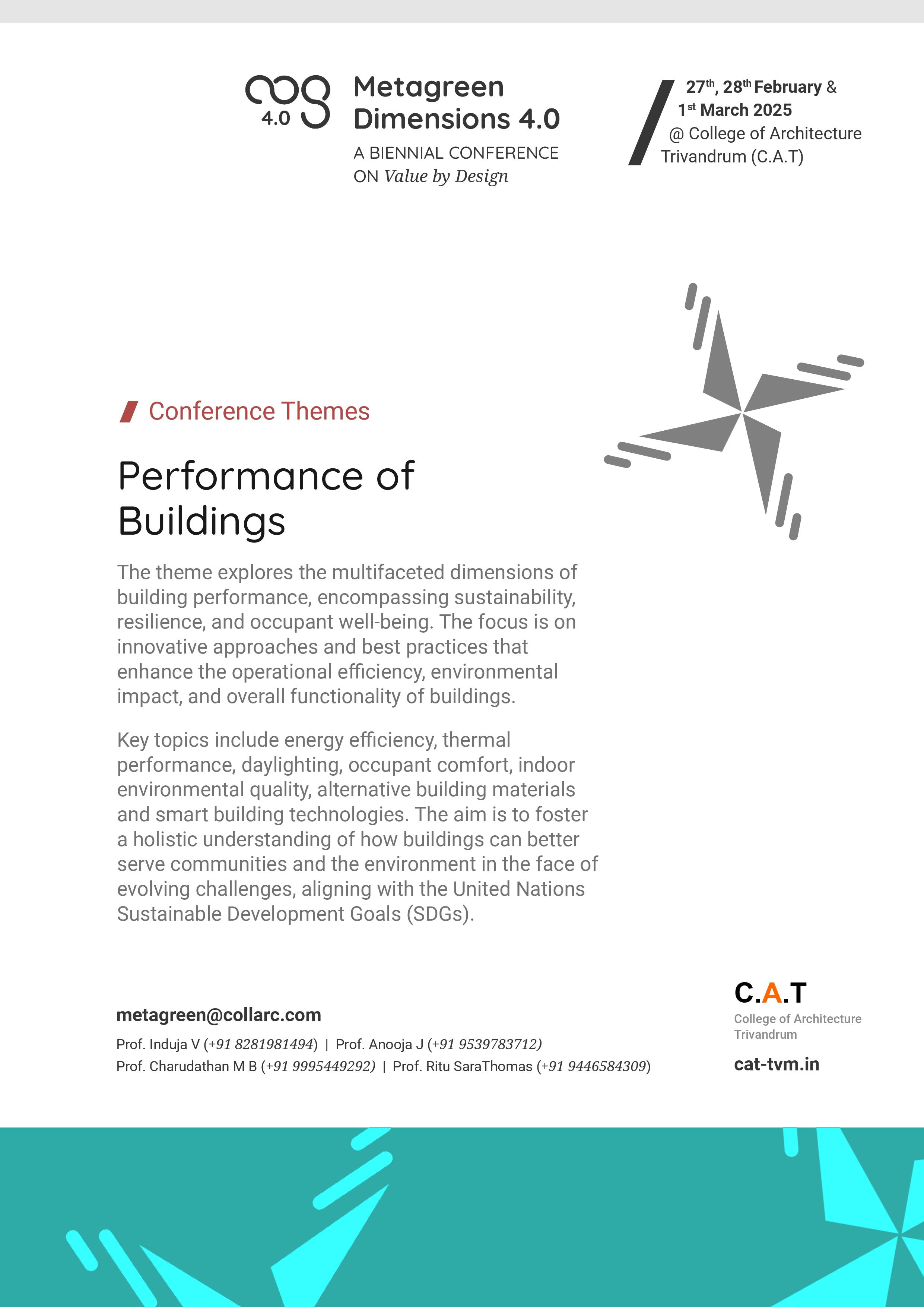Key topics include energy efficiency, thermal performance, daylighting, occupant comfort, indoor environmental quality, alternative building materials and smart building technologies. The aim is to foster a holistic understanding of how buildings can better serve communities and the environment in the face of evolving challenges, aligning with the United Nations Sustainable Development Goals (SDGs).